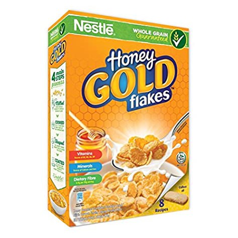 Nestle Honey Gold Flakes With Nestlé Honey Gold Flakes youll be serving up a delicious treat of crispy flakes made from golden corn lightly coated with the rich taste of honey. Cereal Partners Worldwide CPW the maker of Nestlé Breakfast Cereals has launched organic versions of its family-favorite brands CHOCAPIC NESQUIK and CHEERIOS. Nestle Gold Corn Flakes are crunchy and tasty flakes that are loved by all the family members.